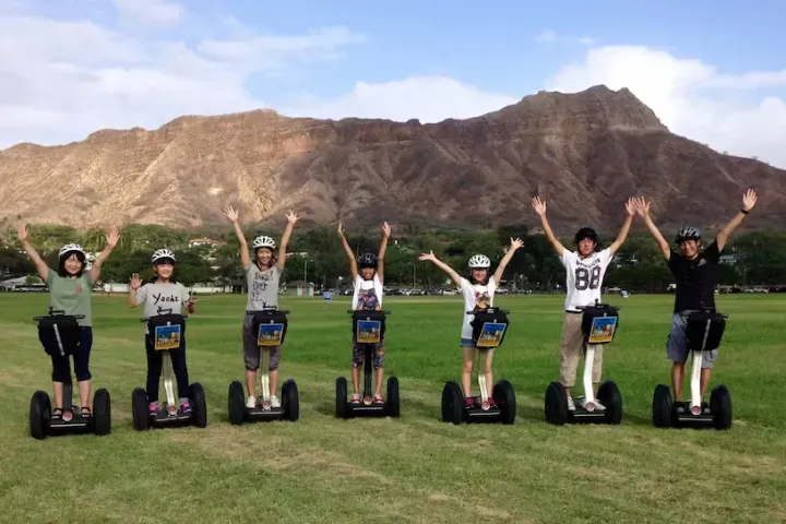 Our in-town 90-minute beach glide, just outside of Waikiki begins with your Segway Personal Transporter lesson and once training is complete, we will glide through Ala Moana Regional Beach Park with her majestic banyan trees, sausage trees and plumeria trees offering fresh fragrances of the Islands.